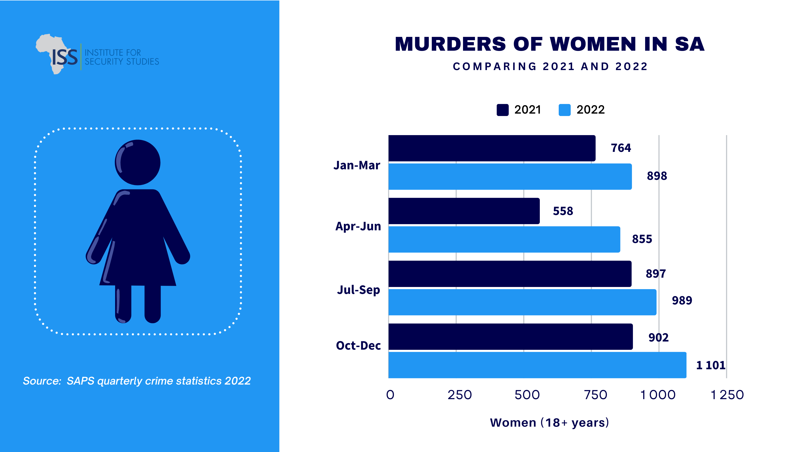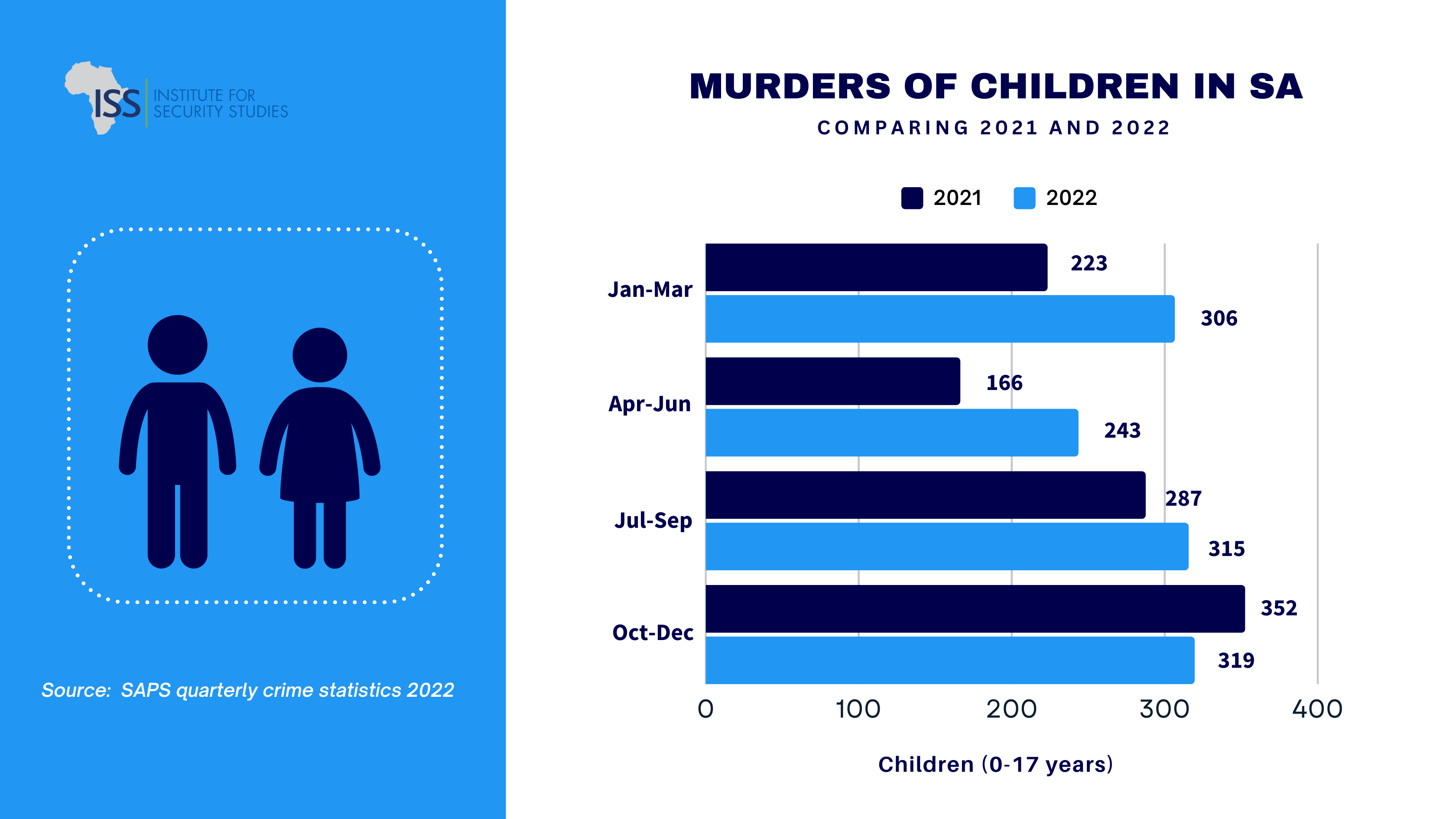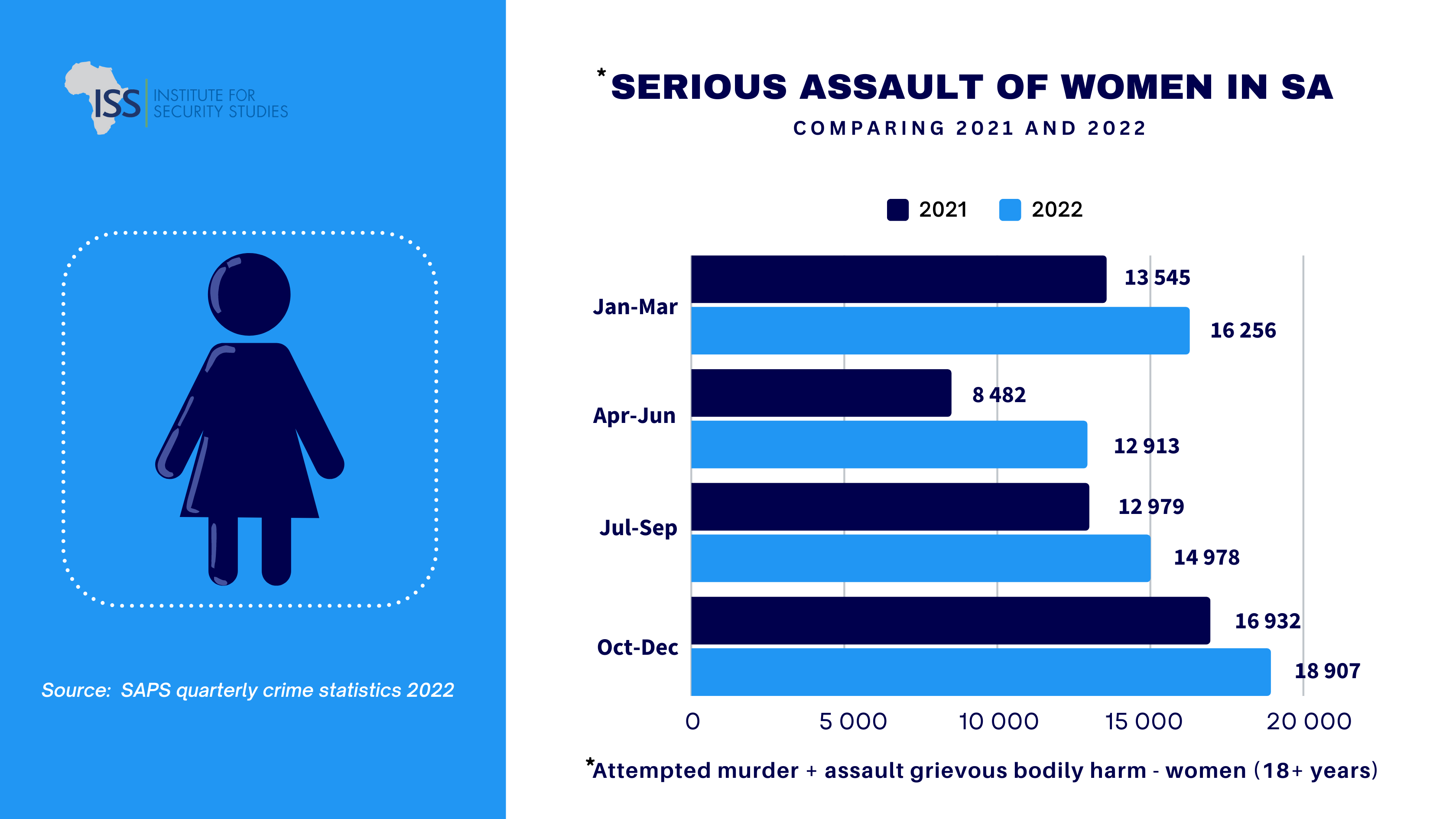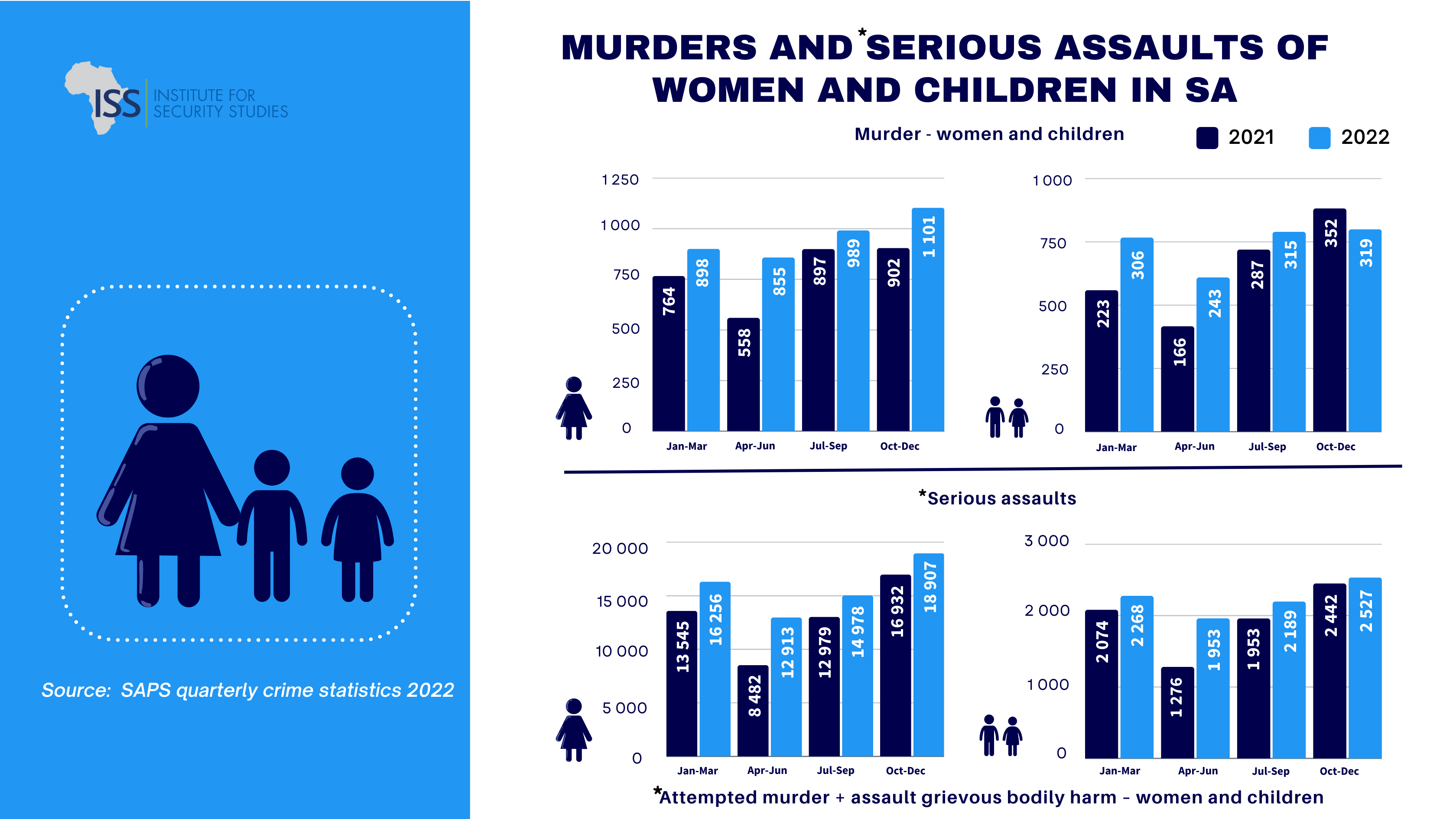 Violent crime against women and children from the SAPS quarterly reports in 2022.